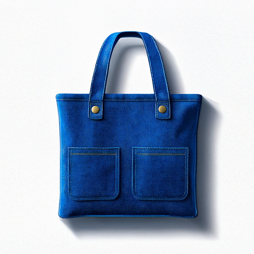 A versatile tote made from upcycled denim, featuring a shaded patch design and elegant lace accents. Spacious yet sturdy, it’s perfect for carrying books, a laptop, or documents, offering durability and timeless style in an eco-friendly way..