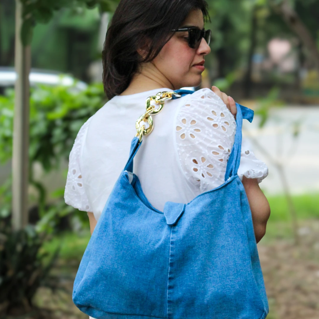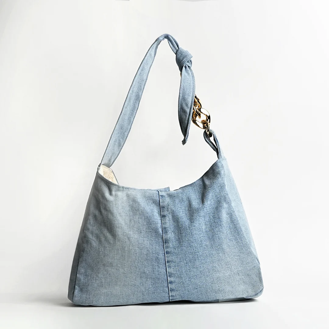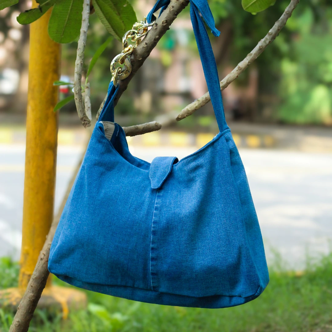 Embrace eco-chic with our Denim Delight Shoulder Bag, thoughtfully crafted from your denim pant to offer a sustainable yet stylish accessory choice.