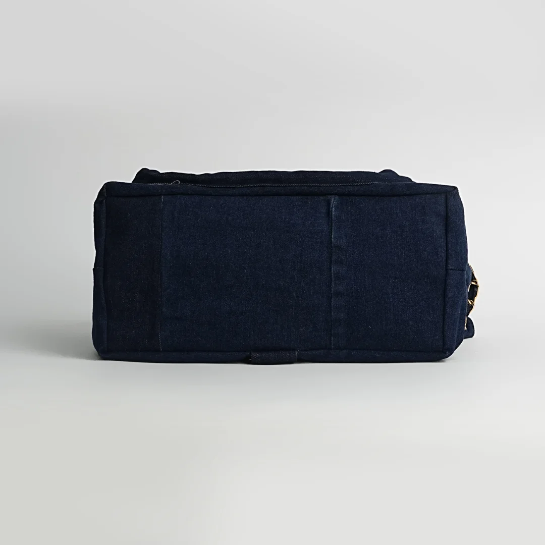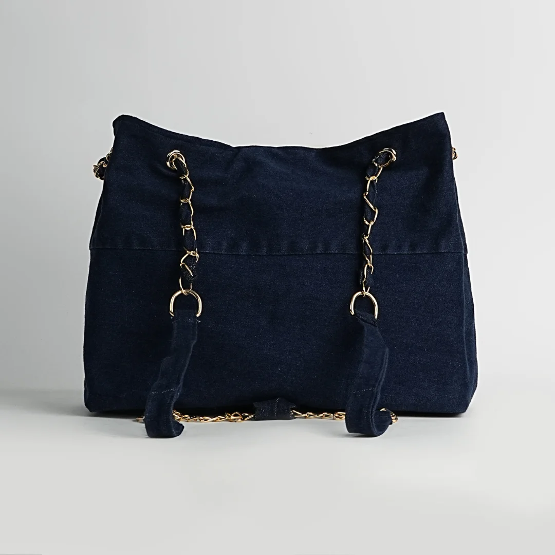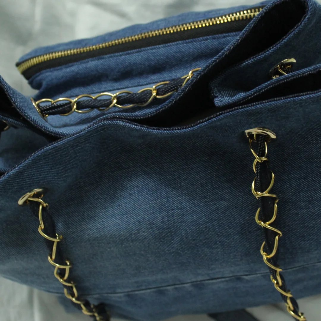 This quilted drawstring denim bag offers a blend of style and functionality, perfect for daily use or as a statement piece for casual outings.